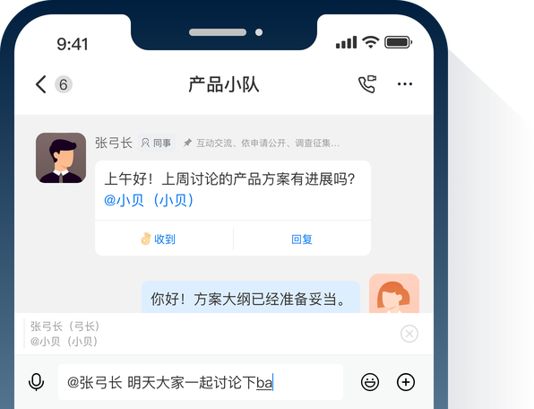 - 提及某位組織成員可直接 @ Ta ,急事直接“叮”一下