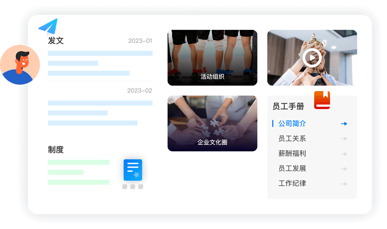 支持領導、個人、市場、人事等不同角色,以及黨建、報表等不同場景的多套門戶