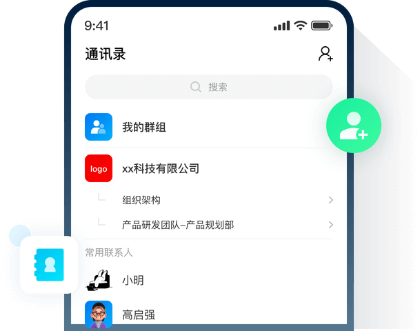 - 保障聊天數據安全;信息交流中可限制普通用戶建立群聊、群發消息,設置組織內的敏感詞等